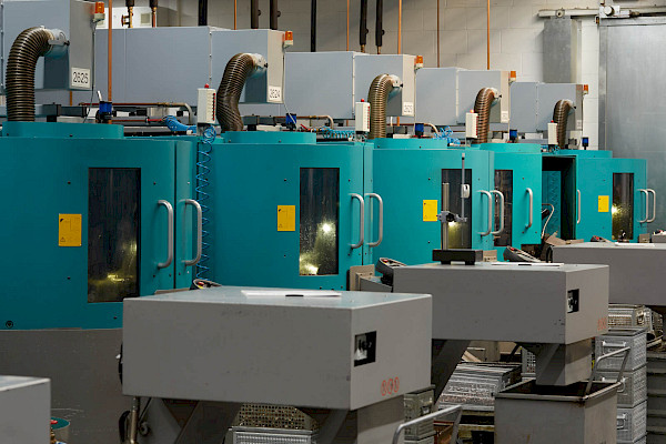 Die CNC Bearbeitung ist Teil der modernen Fertigungstechnik, durch welche die Produktivität durch computergesteuerte Maschinen erhöht wird. Flühs arbeitet mit einem Maschinenpark bestehend aus 130 CNC- und kurvengesteuerten Drehmaschinen, der täglich eine Produktion von etwa 1 Mio. Drehteilen ermöglicht.